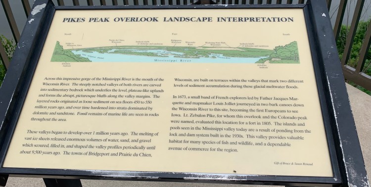 1. Sorry we missed you, Scott! We were at Pike’s Peak State Park on Friday. We were camping at a magical state forest called Yellow River on the Iowa side until the rains came yesterday morning. A flash flood forced us to beat a hasty retreat. Hope you make it to Charles Mound. And the Field of Dreams await your arrival! Keith & Jill (Isle Royale)