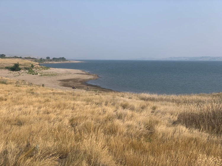 By the time I hit my motel, it was 99° and I was definitely flagging. Luckily it was only 2:30, I was able to get an early steak dinner (great) and a hazy picture of the lake, with one of the few bridges that crosses it.