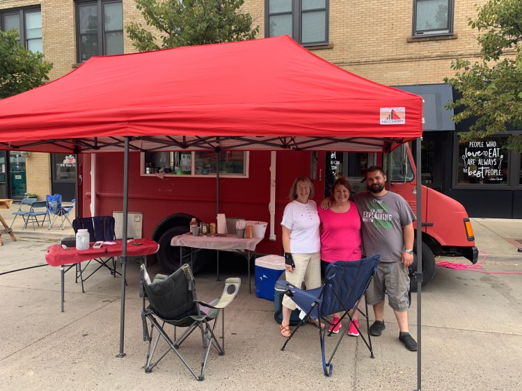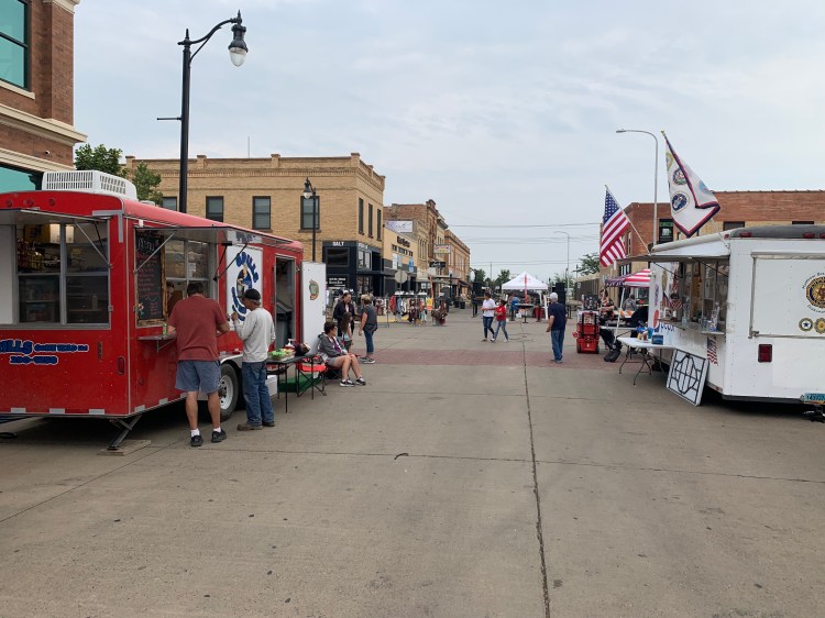 My final stop at Dickinson did not look good at first, I had to deal with 2 miles of very rough construction, pulling off the road every five minutes to let the backlog of cars go by, and the town seemed to offer nothing but the usual dreary fast food joints. I heard some music playing, however, and followed it to a little street fair they have there every Thursday, with lots of food trucks.