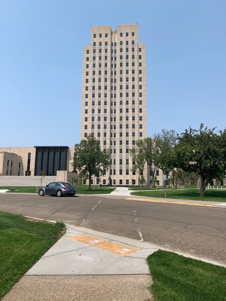 Bismarck is my fourth state capital, and I’ve made a fetish of visiting the capitol building. This one was charming in its goofily incongruous way. I mean, where’s the dome?