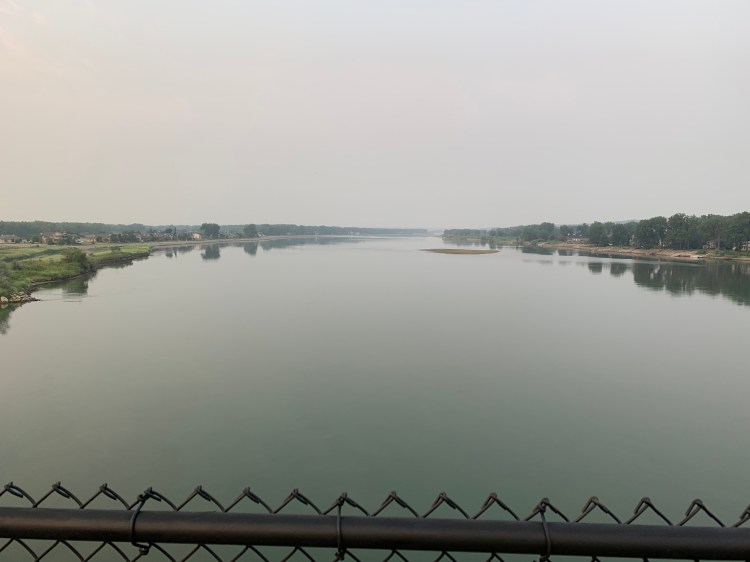 OK, let’s see if we can get this party restarted. I’ve licked my wounds long enough. Got out by 6:30, threaded the streets of Bismarck, and crossed the Missouri for the last time; now I am really entering the West.