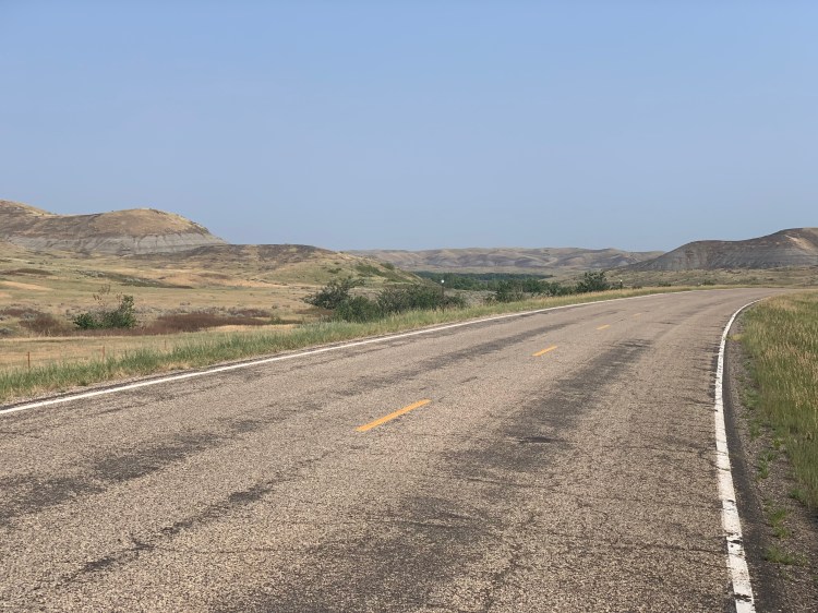 I’m considering staying here another day, leaving at midnight and trying to do the whole 124 miles to Bismarck in a single day. Probably better to just deal with the headwind and hills today, have one uncomfortable night camping, and go to Bismarck tomorrow.