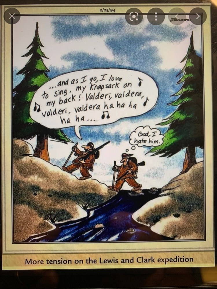 At least tonight, I found a lovely campground on the Missouri, at American Creek in Chamberlain. It’s so easy to meet cool people in a campground. I met Douglas, an English teacher who is taking a motorcycle trip from Oregon to the Pittsburgh area, to give support to his ailing grandparents. He is traveling alone, camping in a hammock, and in many ways we have been having similar experiences. We talked for hours about the people we’ve met, political issues, health issues, and life goals. A favorite book of his is Zen and the Art of Motorcycle Maintenance, and he followed the exact track of the author for part of his journey. Also met Jenna and Jo, physical therapy students from Cincinnati who left this morning are trying to see the western national parks on the way to Seattle. They wisely made reservations at the campgrounds, but are still concerned about traffic, the heat, wildfires, and the drought. They had somehow wedged the lid of their expensive water bottle on too tight to loosen, and sought our help. This triggered an episode of Male Impotent Prowess Syndrome that would have made Click and Clack the Tappet Brothers cackle with delight. We failed, of course, but not before stifled grunts and groans, trying cooking oil, chilling with cold water, and waiting too long to give up. The ladies and the guys were gracious all around, but I wondered if we had been set up, to take us down a notch. Lord knows I needed it.