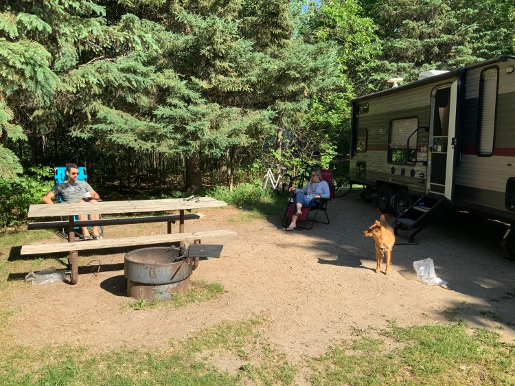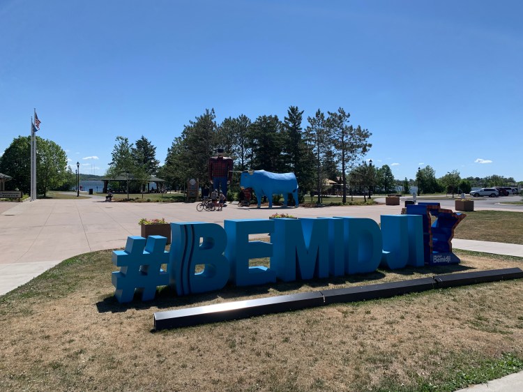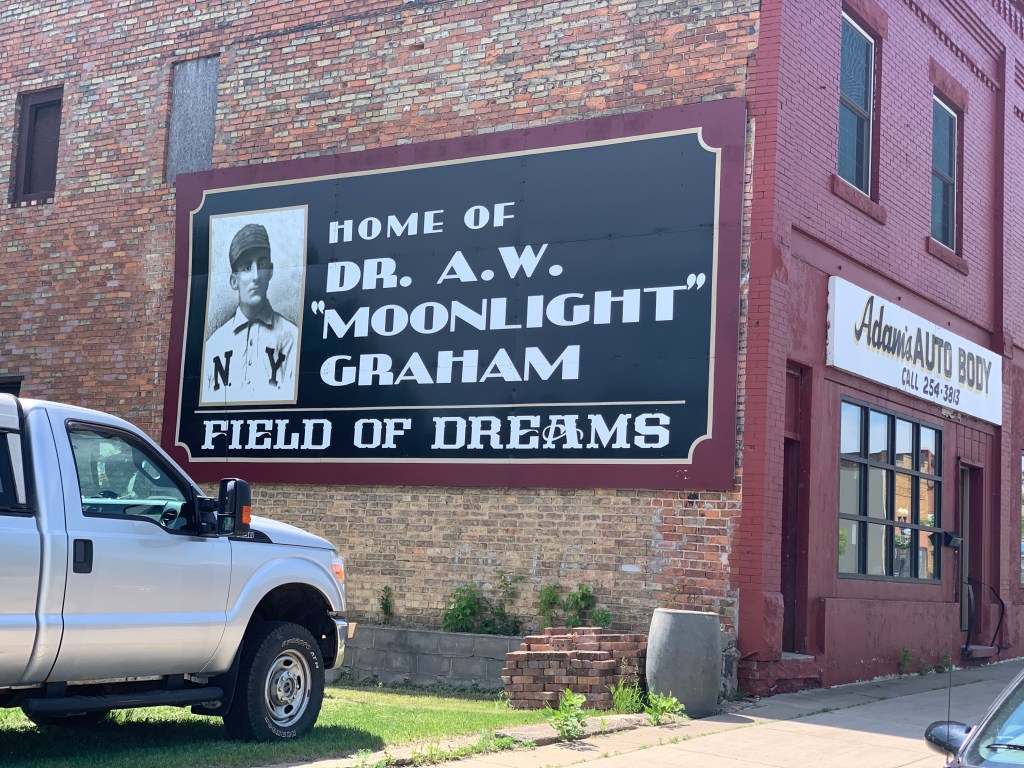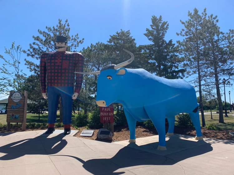 The sun was setting as I rolled into the tiny town of Milaca, delayed even further because of a bridge-out detour. The campground was in the city park, I had called ahead and been told that the showers will be open till 10 PM. I was there at nine, everything was locked and the place was deserted. Fortunately, a landscaper was there spraying the bushes, and told me to call the emergency number. I hated to bother them after hours, this wasn’t really an emergency, but the night person, Troy, was amazingly helpful. He came out and unlocked the bathrooms, said they had been closed because of some vandalism. It wound up being the nicest campground bathroom on the entire trip, I had a luxurious shower and slept like a baby in the deserted campground. Even the homeless person who harangued me briefly in the morning had a little of that Minnesota charm.