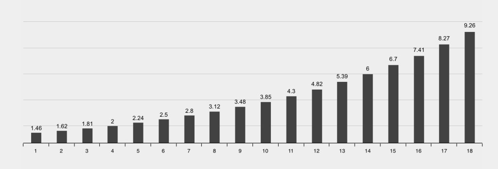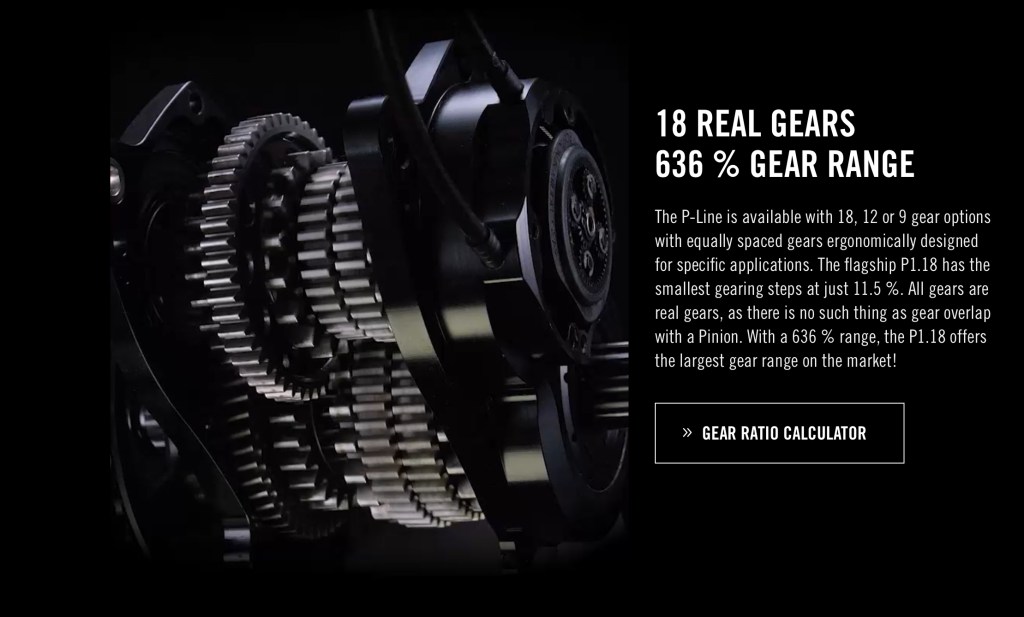 You may ask, what on earth do you need 18 gears for? Pinion has them spaced out evenly, every time you shift, the change in effort is 11%, up or down. Especially with multiple chain rings, derailleurs can’t offer that evenness, often there is redundancy.