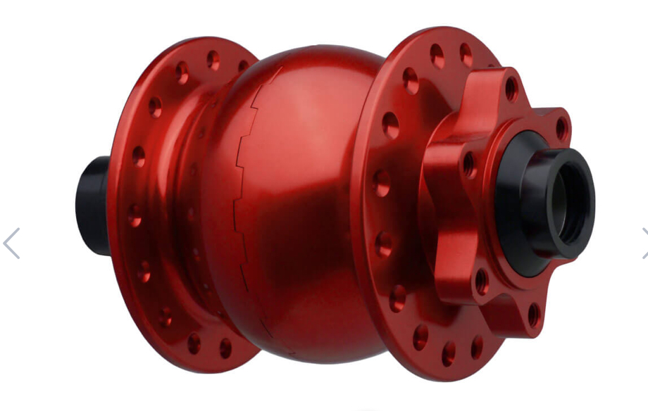 Rear hub by Onyx in Minnesota, has a sprag clutch rather than traditional pawls; less drag and it coasts silently. Stealthy.