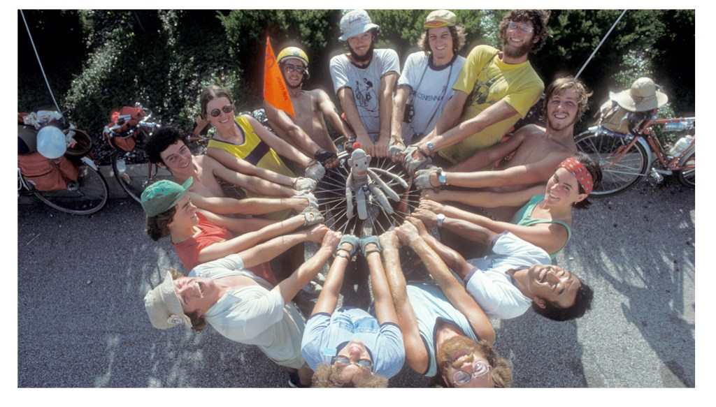 Today, finally, I will be joining the legendary Transamerica Trail, the original coast to coast bicycle route that was begun by a group called Bikecentennial in 1976 as an offbeat way to celebrate the nations bicentennial. A grassroots effort spread by word-of-mouth, it attracted over 4000 cyclists. They were mostly in their 20s, rarely wore helmets, and typically rode discount store bicycles. I had just graduated college and was considering joining them, but just couldn’t swing three months without generating income at that point. These photos capture the esprit of the group, and of the times.