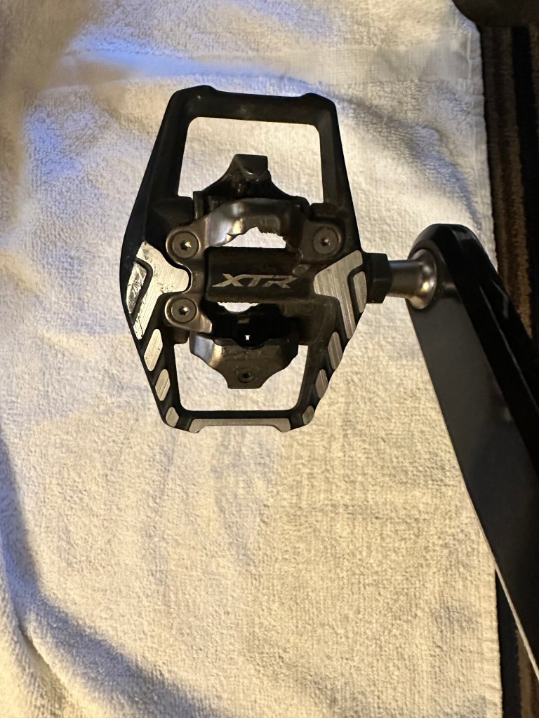 Pedals. The Japanese component on my bicycle. Shimano has been making state of the art equipment for decades. My pedals are their XTR platforms, they clip into my SPD cycling sandals, but can also be used with street shoes. Many people are nervous, to have their shoes clipped in like that, but they pop out easily, ensure perfect foot/pedal alignment, and allow you to pull up as well as push down.