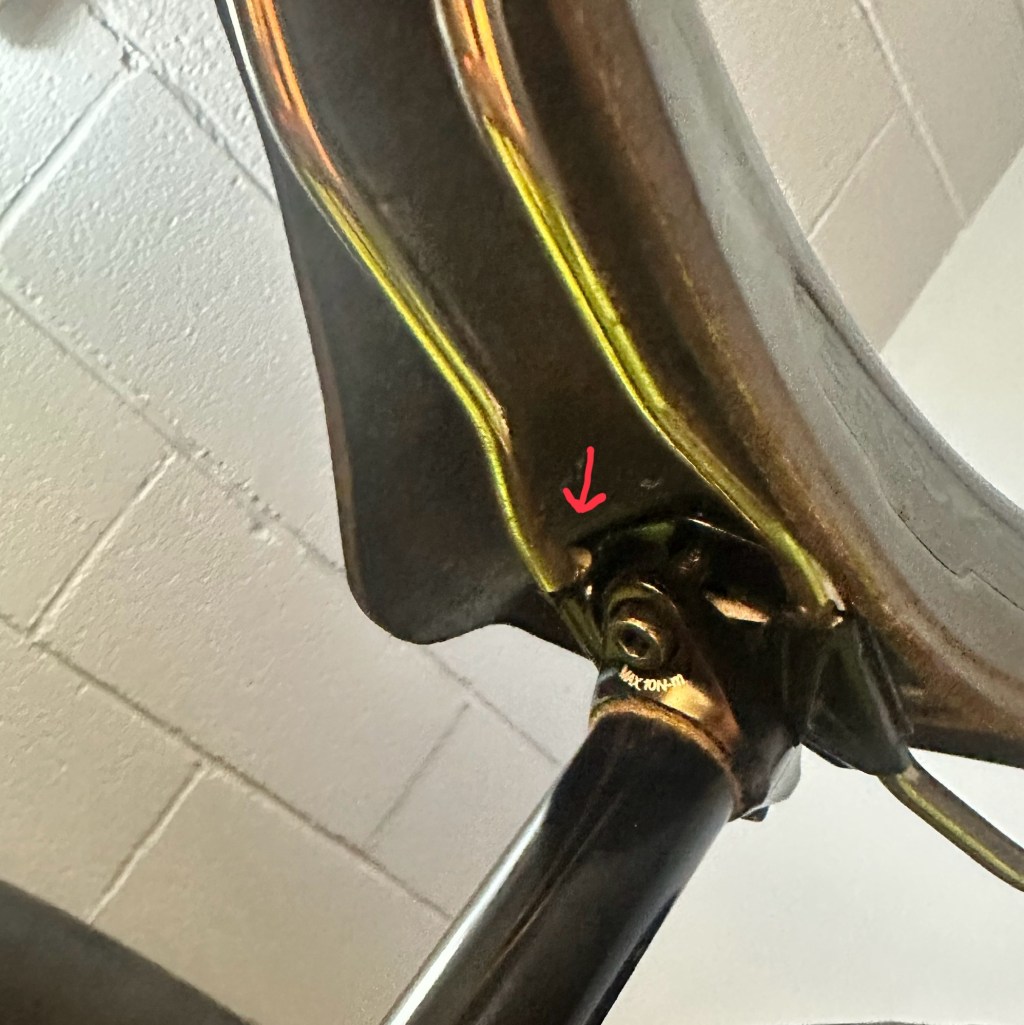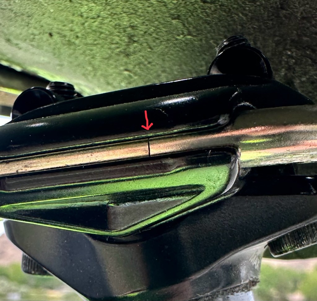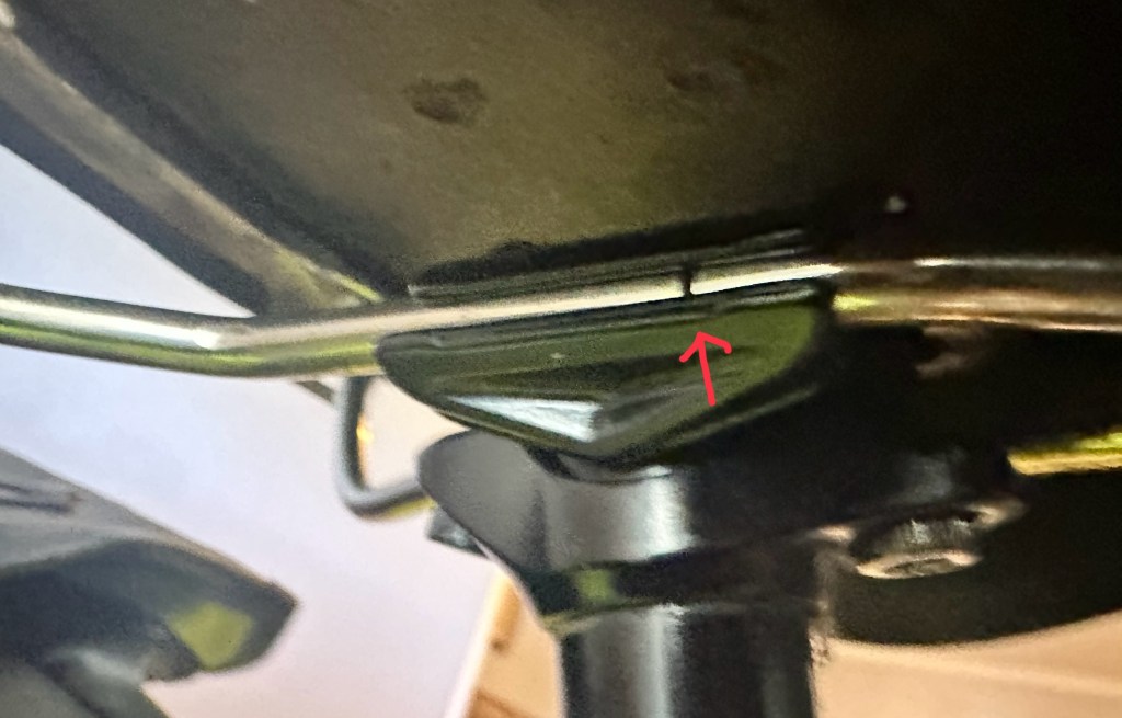 The seat had been squeaking more than usual, so I got down below it to apply some lube. I was immediately taken aback.