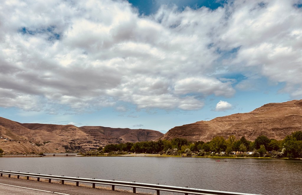 The Snake River, the major tributary of the Columbia. I would follow it for only ten miles before it veered off to its eponymous Canyon, site of the infamous Evel Kenevel Skycycle jump so long ago. I’d been so anxious I failed to notice my odometer rolling over to 1,000, and missed the chance to belt out, as I had in the rain in 2021, the thumping Proclaimers song.