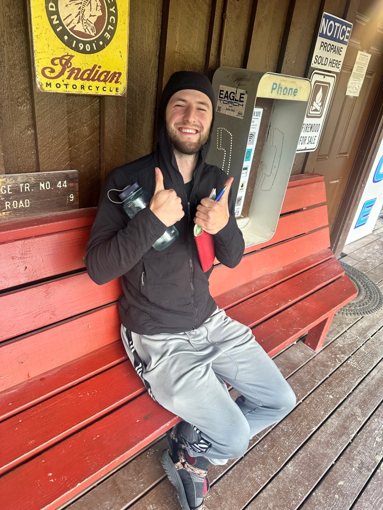 As Billy from the B&B had informed me, Lochsa Lodge was the only accommodation in this stretch, and the only place that had Wi-Fi. It was the weakest Wi-Fi I’ve ever seen, taking many minutes to load a single webpage, but I was finally able to reach Jane. There was also a pay phone at the general store (how long has it been since you’ve used one of those?) where you could talk as long as you liked for four quarters (I kept waiting for the operator to say “40 cents more for the next three minutes”).