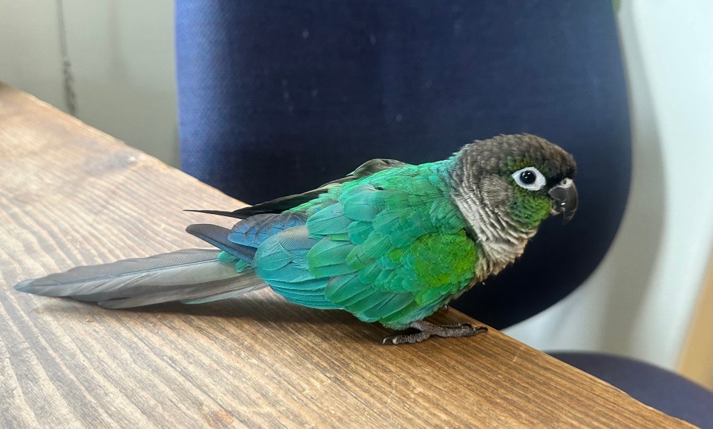 Erin and his green-cheeked conure AlfieAlfie entertained us with his antics and intelligence, he’s 11 years old and will probably live to be 30.